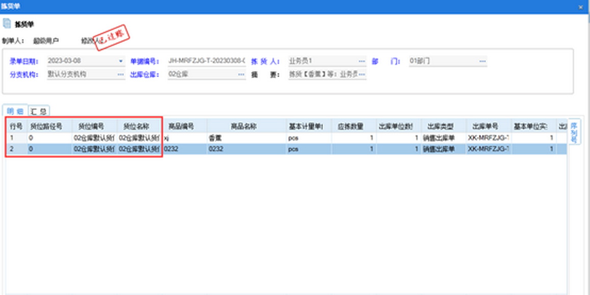 三、仓储运输管理-仓储运输管理-拣货单,做拣货单调出库单,同一个仓库需要拣货的商品可以做在一张拣货单中,便于仓库人员根据货位及货位路径号对商品进行拣货。