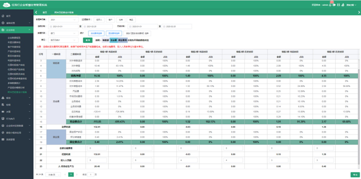 通过上面的经营会计报表,可迅速发现事业部结构问题,快速准确的洞察费用黑洞,哪里赚钱哪里亏钱,一目了然;通过数据的呈现,真正实现企业阿米巴经营管理的落地。
