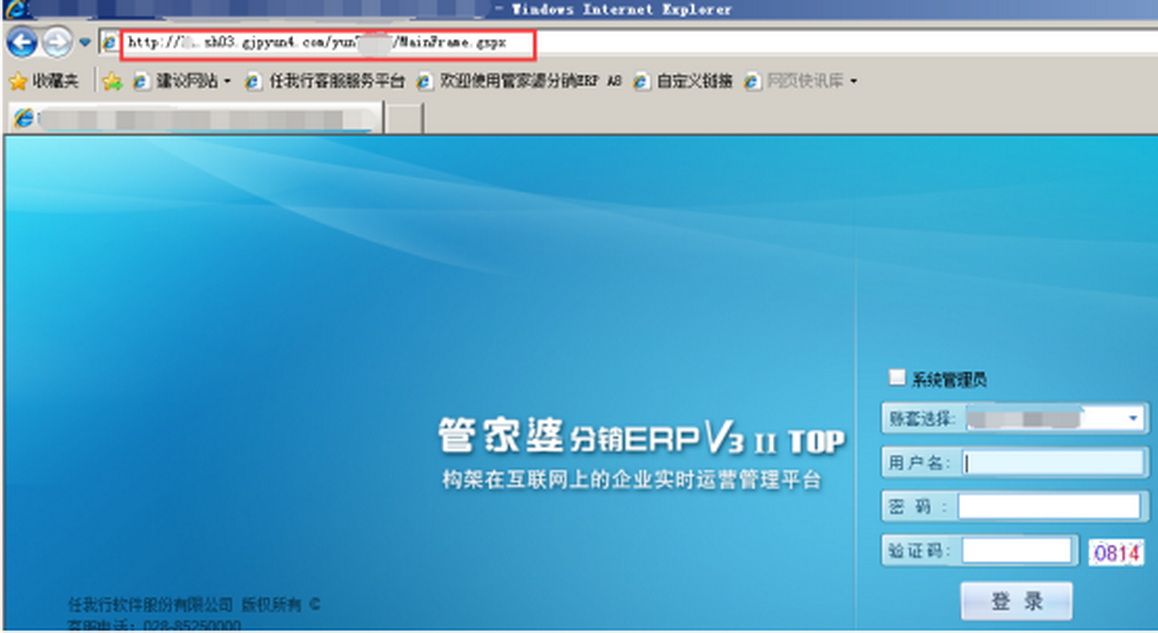 3、在任我行浏览器里面按照下面截图的方式填写访问地址,进入访问就不会提示【Could not obtain OLE control window handle】错误了。
