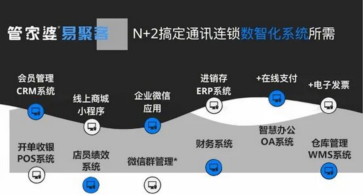 1、赋能工具:管家婆分销ERP A8(1000用户)+管家婆易聚客(200门店)
