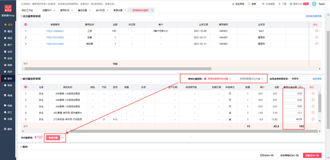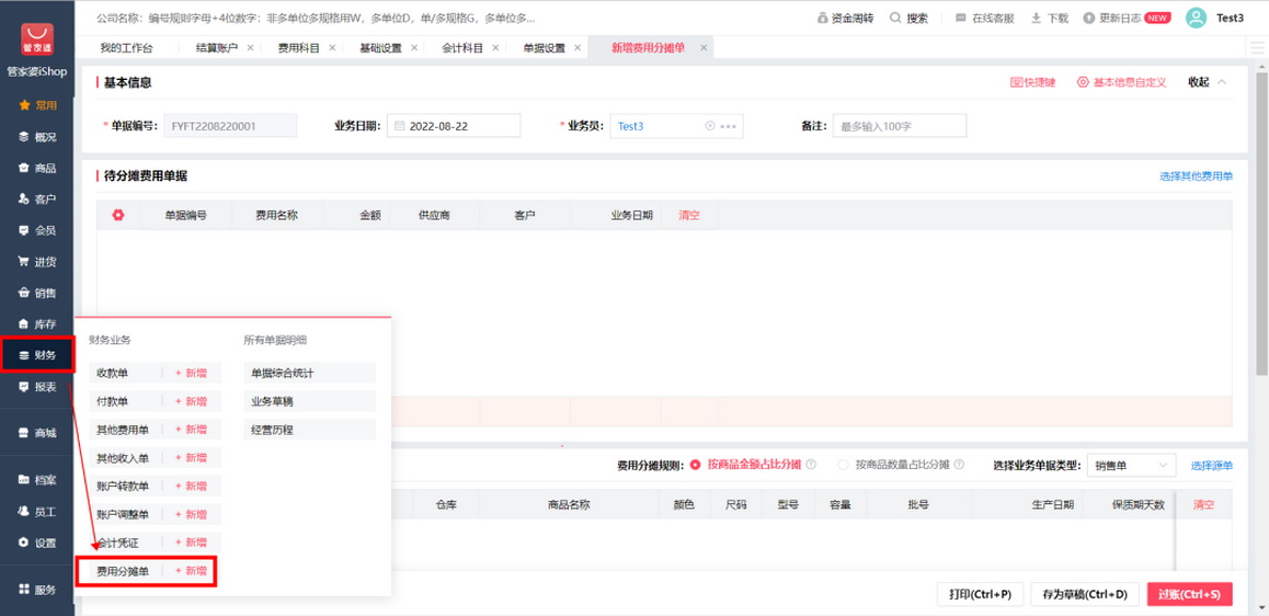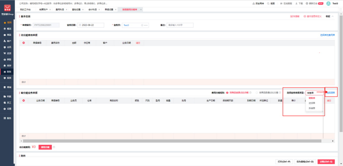 升级至专业版即可使用费用分摊单功能:财务-费用分摊单