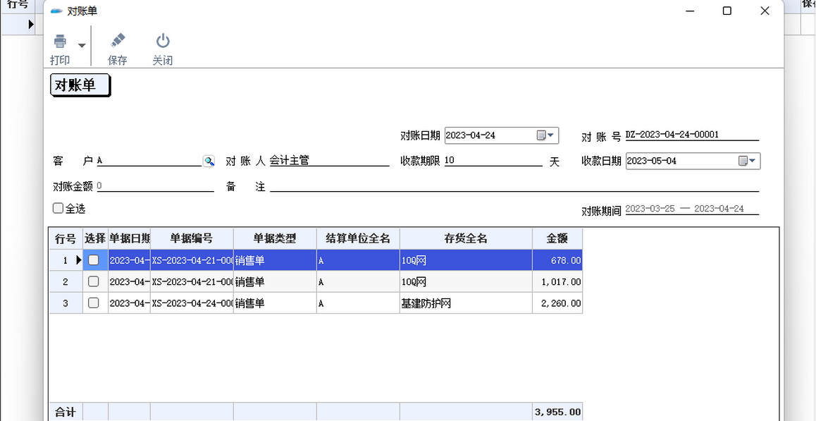 2.对账单生成及打印