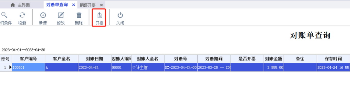 3.对账确认生成发票(形成应收账款)