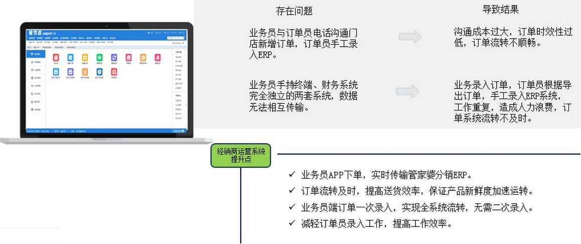 内蒙古蒙牛乳业(集团)股份有限公司始建于1999年,总部设在内蒙古和林格尔县盛乐经济园区。2017年,蒙牛正式成为2018 FIFA世界杯全球官方赞助商。蒙牛还是中国航天事业战略合作伙伴、NBA中国官方市场合作伙伴、上海迪士尼度假区官方乳品合作伙伴、北京环球度假区官方乳品及冰淇淋独家供应商。截至2017年12月,蒙牛根据市场潜力及产品策略布局产能,在全国建立了38个生产基地,新西兰海外1个基地,年产能合922万吨。蒙牛全国经销商系统推进,管家婆分销ERP携手北京赢销通软件技术有限公司助力蒙牛集团智网赋能。 乳制品行业机遇与挑战 当我们每天喝蒙牛牛奶时,大家应该想的是哪种口味是我喜欢的,哪种是我亲戚朋友喜欢的口味。而小管君则有点不同,想到的是乳制品行业机遇与挑战:如何确保任务量的同时,突破价格、利润的壁垒,实现市场经营的可持续发展。 企业经营痛点 手工报表:易错、低效、失真。 第三方数据:可供战略参考、难以全局应用。 库存货龄:库存周转难以实时把控、终端动销无法及时反馈。 费用投入:费用投入失衡,针对改良难度大。 如何掌握经营主动?准确的市场投入、准确的市场反馈、人员高效率、完善的基础配置。 蒙牛乳业--- 企业与经销商共成长,需要的不是转型而是升级。智网系统,客户利益为先,由管控转为助力赋能。打造一套经销商财务业务一体化,支持多品牌经营,的经销商运营系统。 蒙牛乳业目前管理方向: 可视:及时、准确了解渠道销售和库存情况。及时、准确了解市场需求、竞争者情况。结果检查执行是否到位,分销商不再截流。 2 增效:提升服务水平,实现精耕细作。促进销量的增长,降低供应链总体成本。 3 调控:事前执行到位,分销商不再截流。决策分析,积极求变、创新。生产预测更准确,降低自身安全库存。 功能亮点 赢销通APP下单,实时传输至管家婆分销ERP。 管家婆分销ERP开放式数据共享,企业一体化管理。 销售:帮助业务人员和配送站更便捷的完成拜访、下单、配送流程。 后勤:帮助后勤人员提升效率、降低成本,为更快捷有效服务销售团队赋能。 管理:协助业务管理者全面、了解生意。为决策提供明确、可靠的数据支持。 管家婆分销ERP携手赢销通助力蒙牛集团智网赋能。智网平台的前瞻性有目共睹: 首先,驱动行业实现全数据业务链的完整闭环:涵盖从品牌商、经销商、门店甚至消费者的业务链,全面数字化的RTM平台; 其次,实现全面数字化赋能经销商:该系统可以支持经销商多品牌多业态经营, 支持经销商业务财务一体化。可以优化规范业务代表的工作流程,以及为不同规模的经销商提供灵活多样的技术组合方案; 第三,人工智能的充分应用也是智网系统的亮点:通过人工智能优化终端拜访流程。同时,帮助经销商面对业务快速增长的情况下对人力资源智能优化,提高效率的同时减少了成本支出。 2019年试点分子公司、经销商将全部上线。经销商代表纷纷表示:智网项目初期测试,解决了终端覆盖困扰和信息流传递瓶颈等多项问题,大幅降低沟通成本。同时,门店管理水平以及人员工作效率飞速提升,带动市场整体运营能力、盈利能力的增长。 新一轮数字化战役的号角已然吹响,管家婆分销ERP携手赢销通助力蒙牛集团智网赋能。数字化信息时代蒙牛砥砺奋进,改革图强的信念,更表达了蒙牛赋能客户的坚定决心。同时,也预示着数字化管理已翻开了时代篇章,以“ 数字化赋能经销商” 的理念将会被越来越多的企业和经销商广泛认可和实践,这也必将成为企业和经销商未来生意增长的核心竞争力!