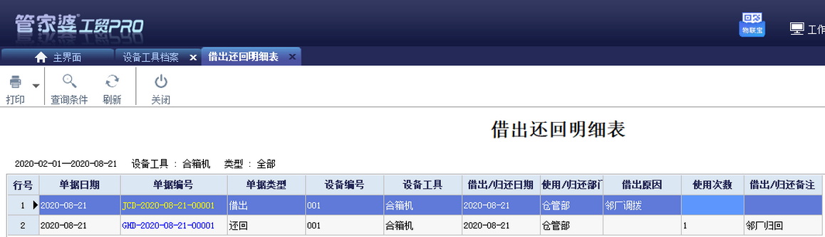 其中,保养计划能够针对设备制定规划,支持按天/周/月设置保养周期;维修&保养记录能够清晰记录设备故障原因、维修情况及其日常保养信息;借出还回管理则能对设备的借出、还回进行登记,并支持明细报表查询。