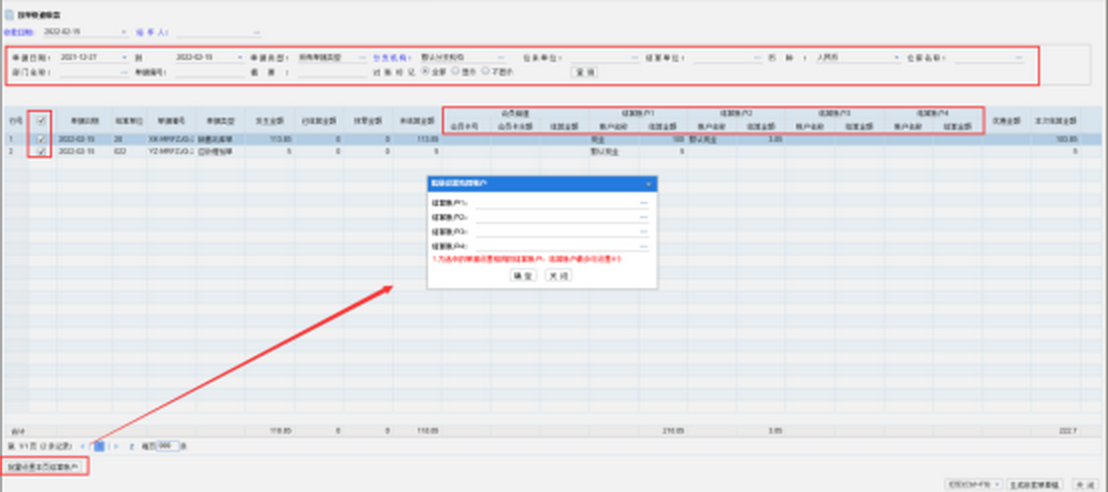 目前收款单只能选择一个结算单位收款,如果想要多个结算单位快速收款,就可以使用按单快速收款功能,提高收款速度。下面我们一起来学习在分销A\V系列软件中如何使用按单快速收款功能吧。 一、9.93版本开始,往来管理-收付款处理-按单快速收款。 二、选择需要结算的单据,填写收款账户;点【批量设置本页结算账户】可以为选中的单据批量设置结算账户,可设置1到4种收款账户。 【注意】: 1、按商品、按品牌结算的单据,不会出现在表体的未结算单据列表里面。 2、表体操作顺序:先勾选本次收款的单据,再选择收款账户,最后填写收款金额。否则会有下面提示: 提示:勾选单据后才能输入结算金额! 提示:设置账户名称后才能输入结算金额! 3、支持多账户收款。一张未结算的单据,支持1到5种收款账户进行收款。 三、点【生成收款单草稿】会根据相同【分支机构+往来单位+结算单位】的单据,生成同一张收款单。 四、到业务草稿里面去把自动生成的收款单过账。