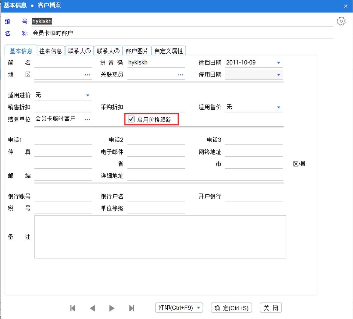 02 客户档案\供货商档案,勾上【启用价格跟踪】。