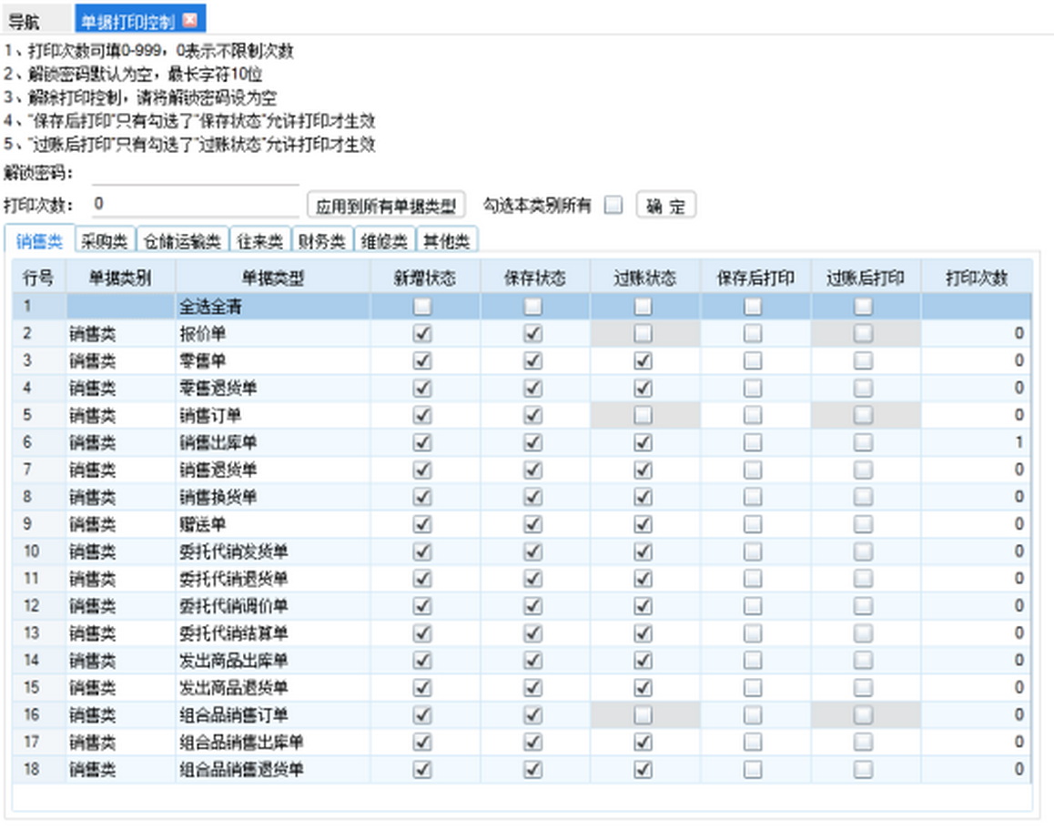 2个都勾选,做单的时候不可以打印。经营历程和业务草稿里面可以打印。保存和过账后都会提示打印。