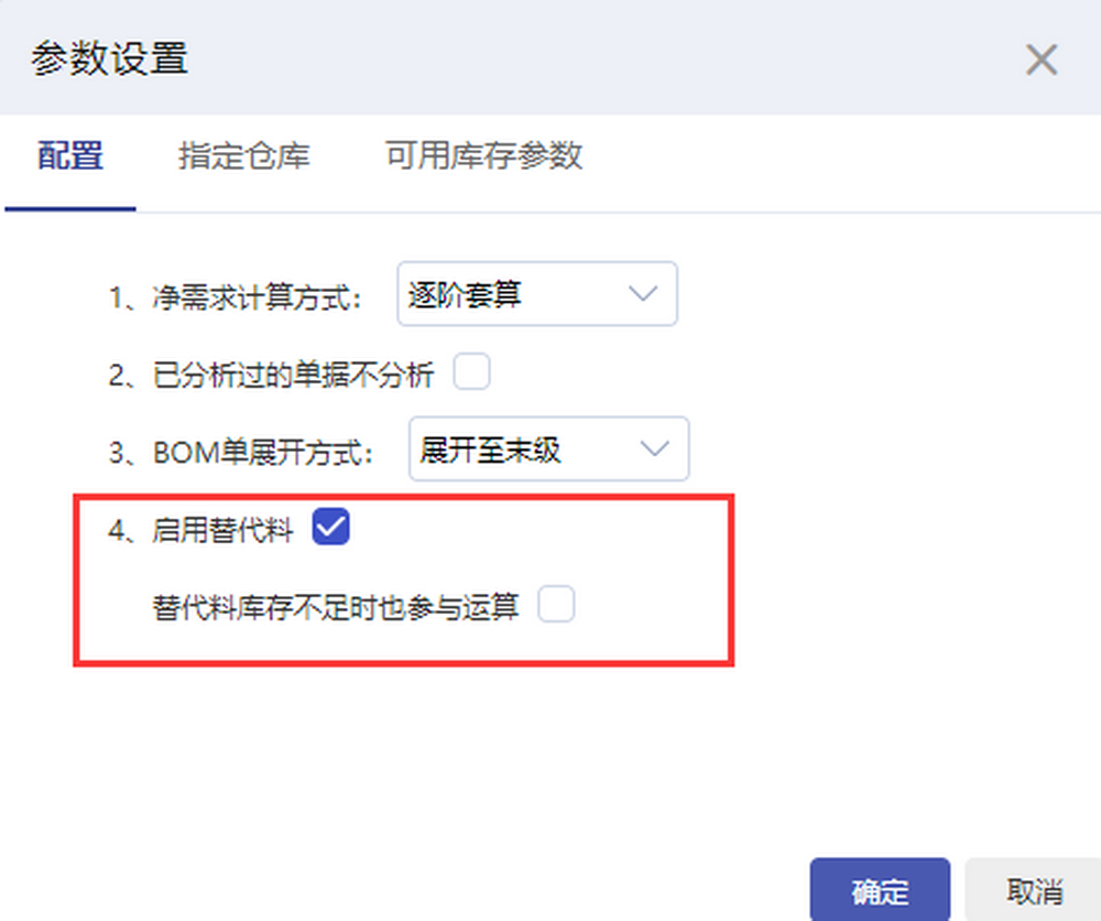 启用替代料,但是不启用替代料库存不足时也参与计算