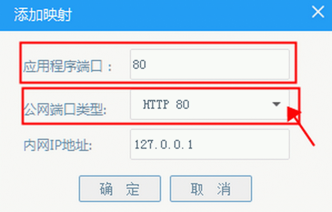 (1)应用程序端口输入80,公网端口类型选择HTTP 80,如图。
